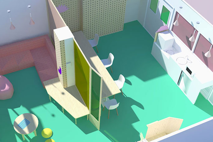 unité pédopsychiatrique . couleurs . mobilier . signalétique